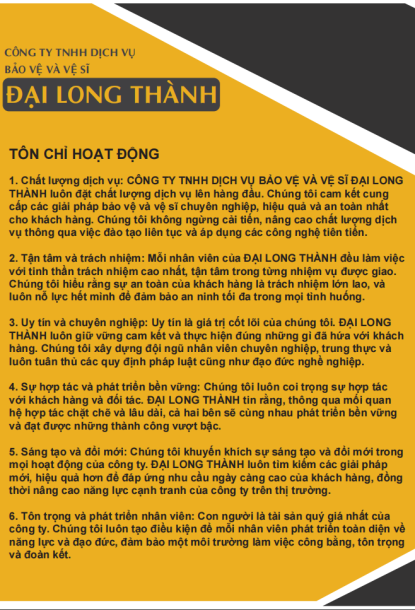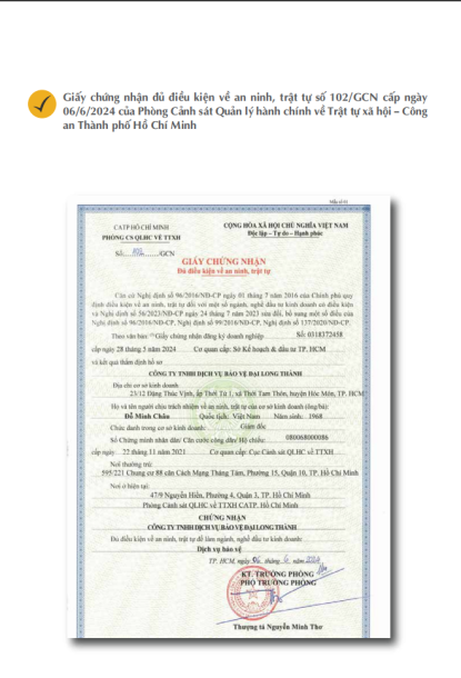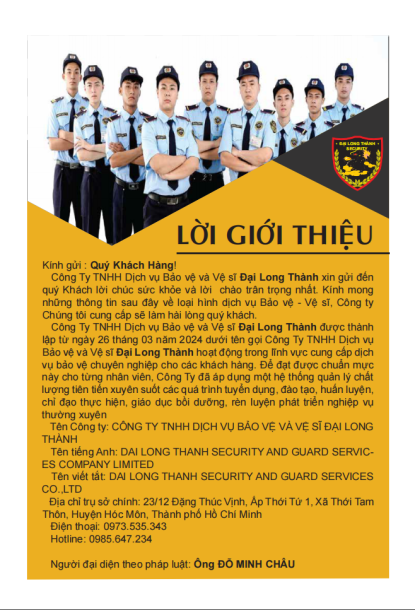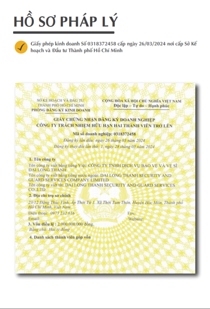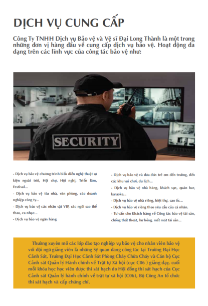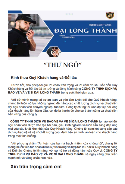 CTY TNHH DỊCH VỤ BẢO VỆ VÀ VỆ SĨ ĐẠI LONG THÀNH